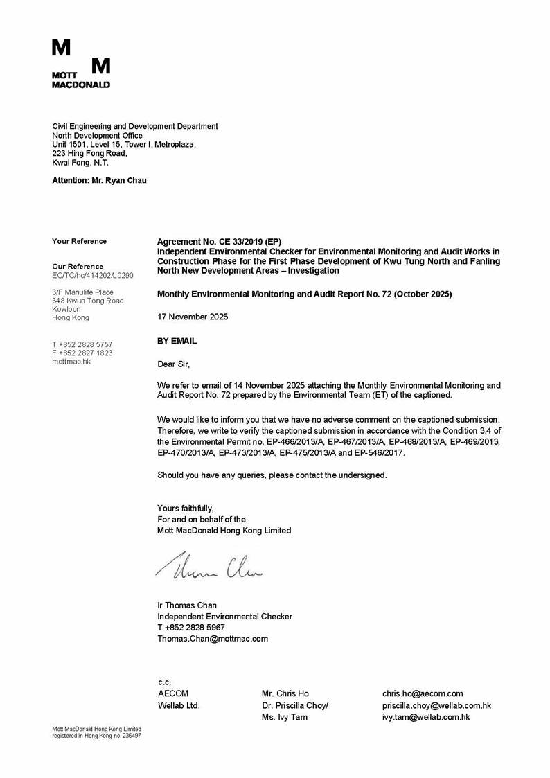 Monitoring of Measures to Minimise Impacts to Ma Tso Lung Stream and Siu Hang San
